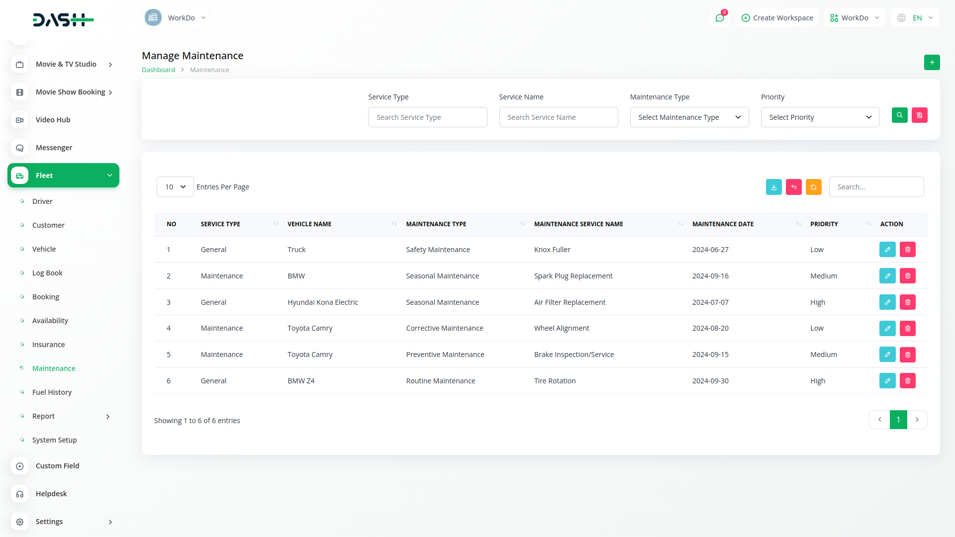 Fleet gives users deep insight into their maintenance needs with detailed Vehicle Bookings, Vehicles,Maintenance,insurance , dashboards