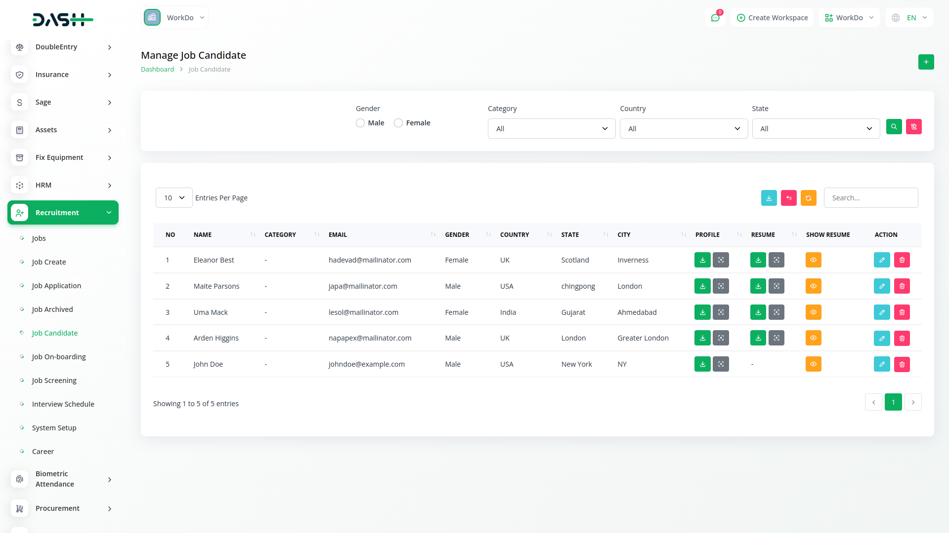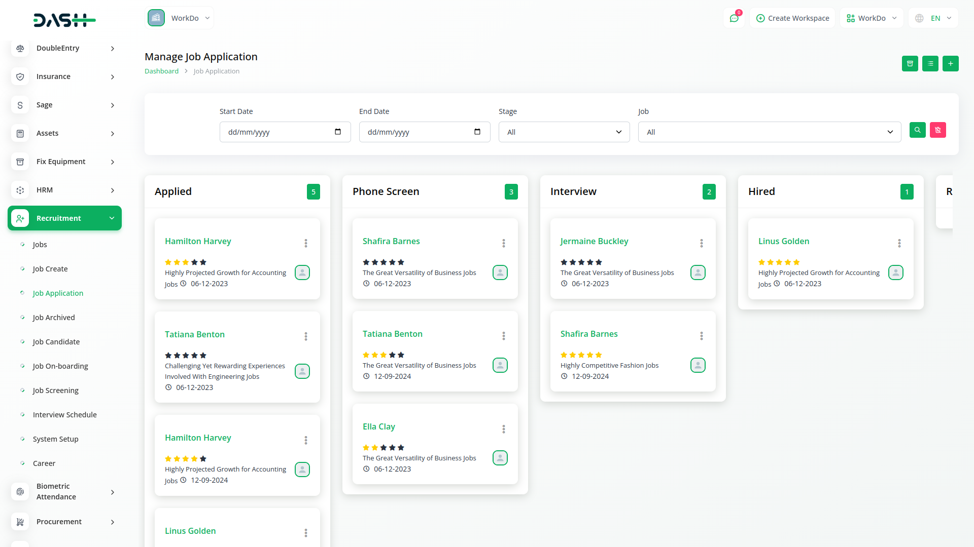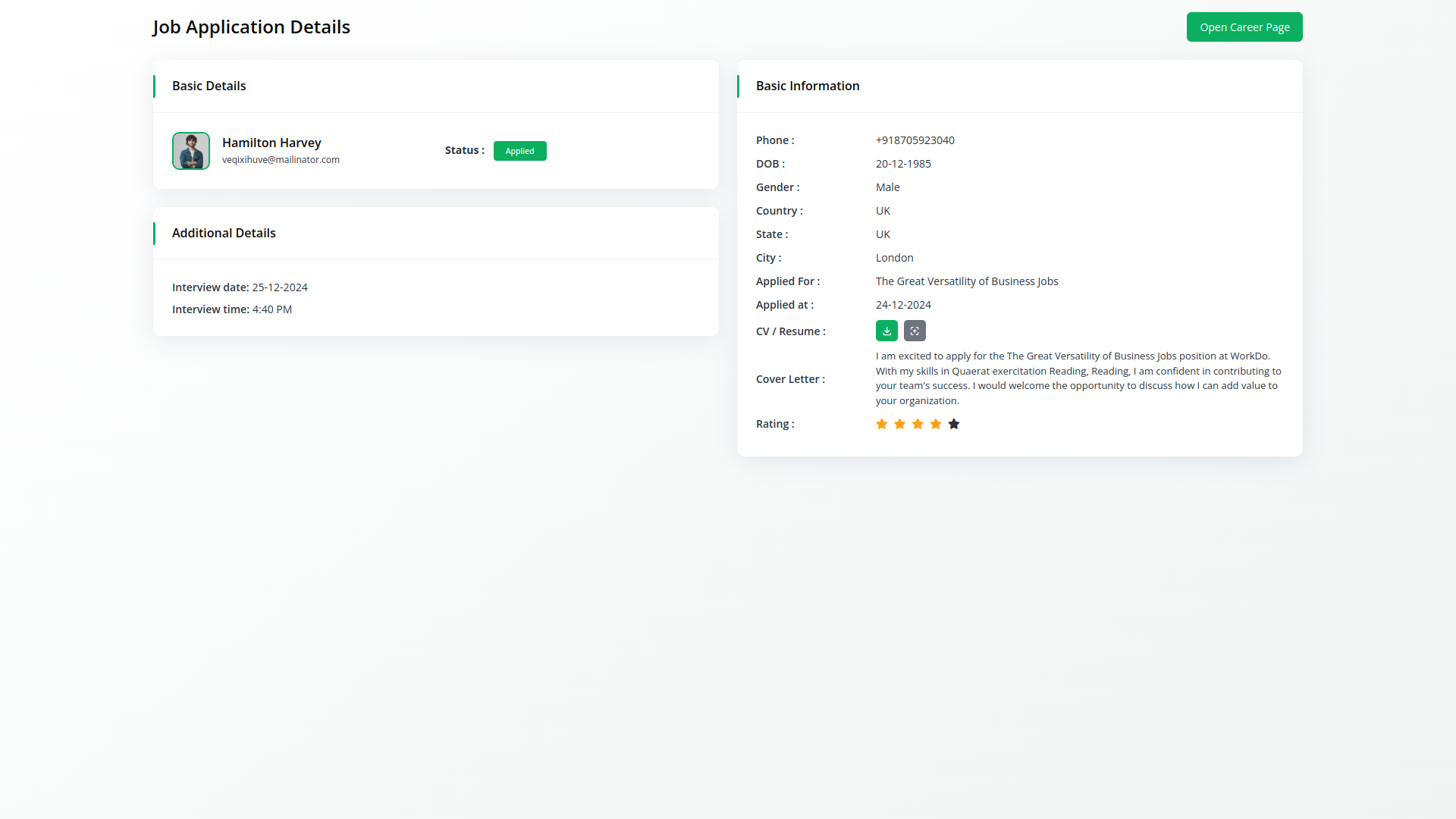 Efficiently managing incoming job applications is facilitated through the Candidate Management page. Here, users can review, filter, and respond to applications seamlessly. This centralized hub provides a clear overview of each candidates journey, from onboarding application. Robust filtering and sorting options allow users to prioritize candidates based on qualifications and suitability for the role.